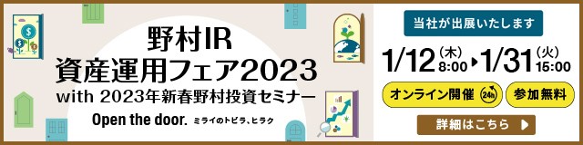 「野村IR資産運用フェア2023」(2023年1月12日~31日)出展のお知らせ