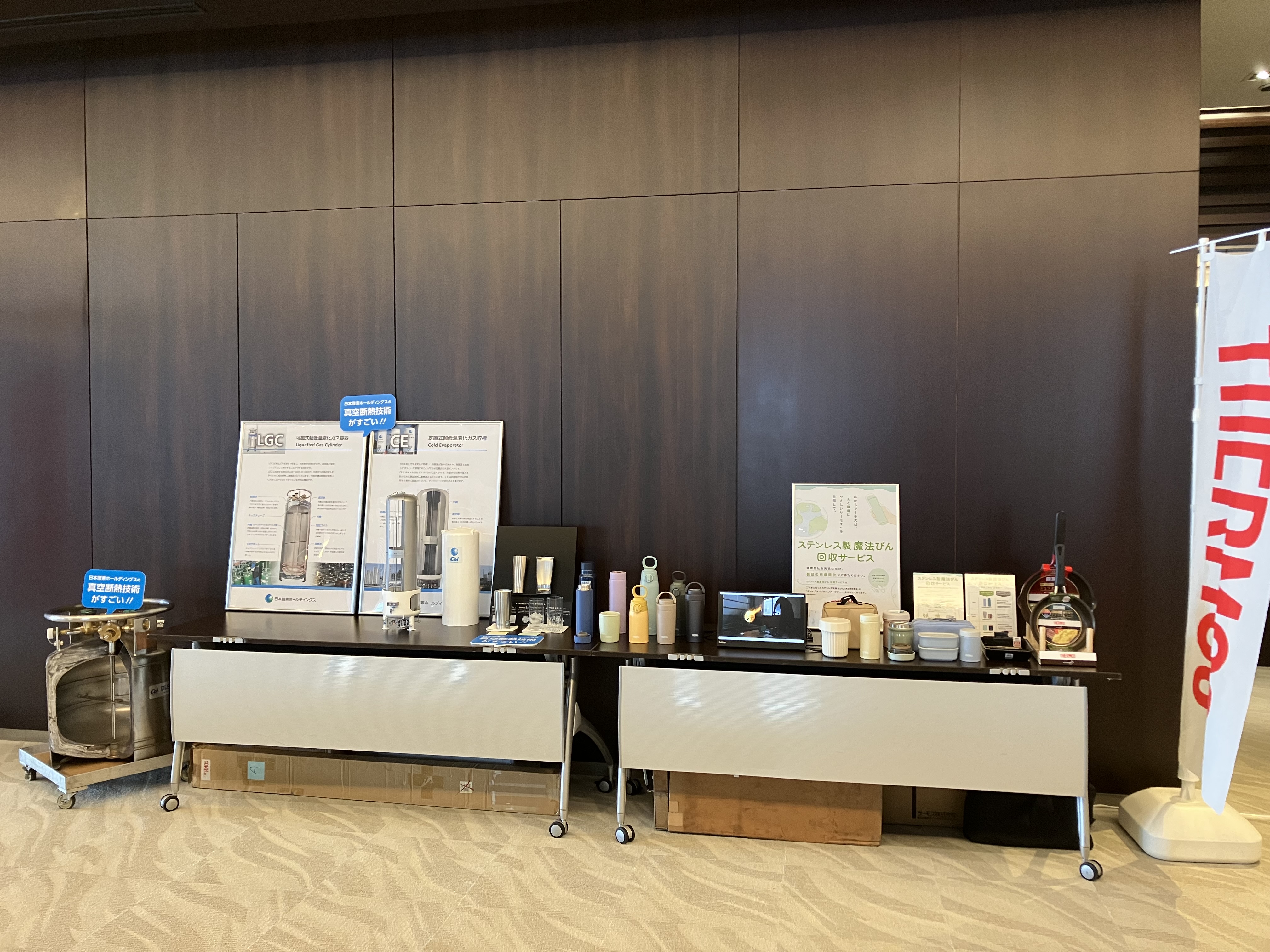 説明会場前に設置した、当社グループ製品の展示ブース