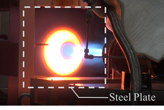 Ⓡ OxHeat」が鋼板を熔解する様子